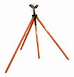 This heavy duty tripod meets NCHRP 350 test level 2 compatibility with rigid or roll-up signs. It comes with both rigid and roll-up sign brackets. It has rugged galvanized steel square tube construction. It also has a telescoping mast with triple flag holder. Its open footprint is 50" x 55" and its storage height is 56". It weighs 18 lbs.